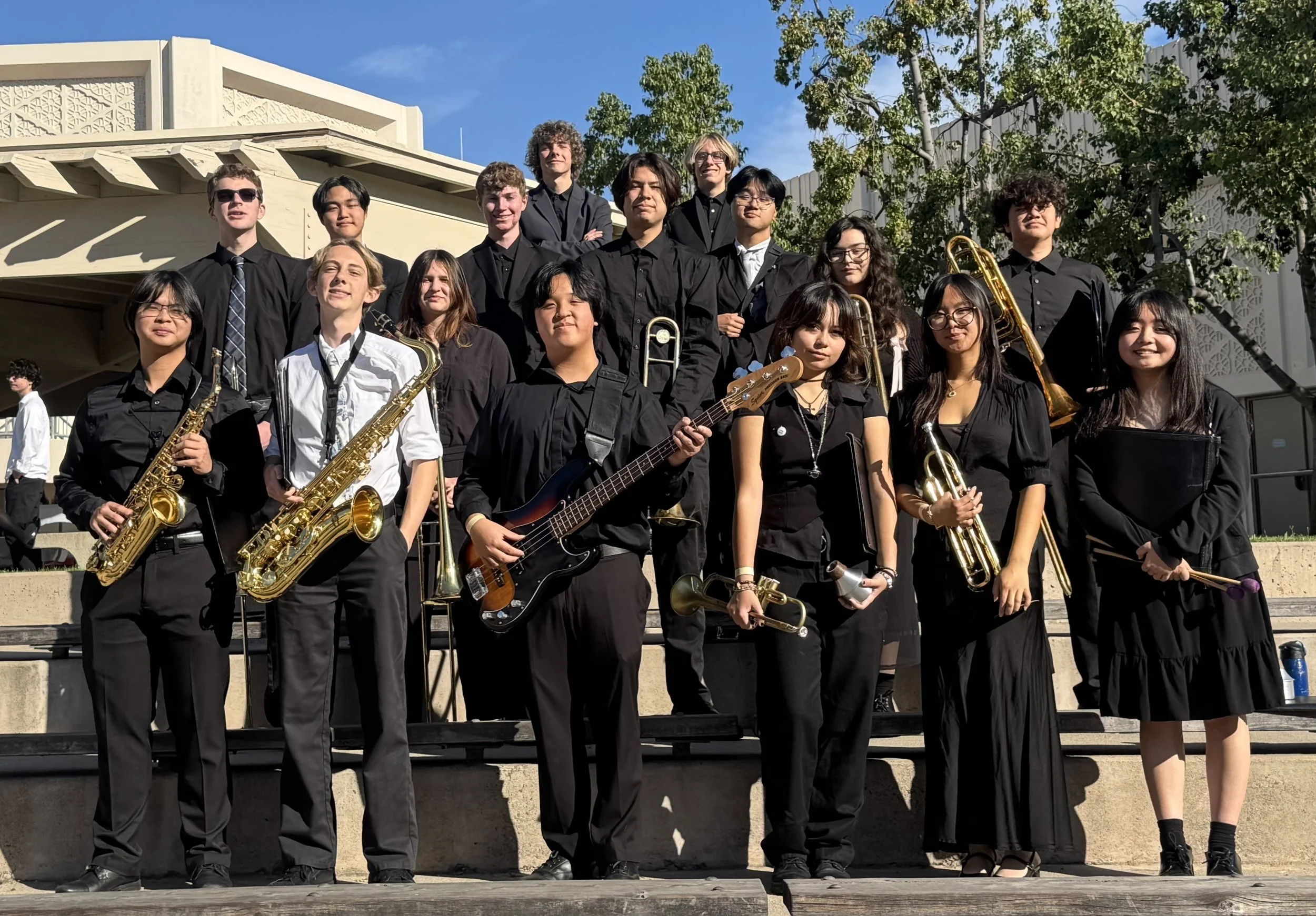 Jazz band forms through audition at the end of 1st semester. The class meets during 7th period. The group plays a wide variety of jazz and jazz style music. They perform often during the semester, take part in festivals, and have taken part in the Disneyland Community Arts Showcase.